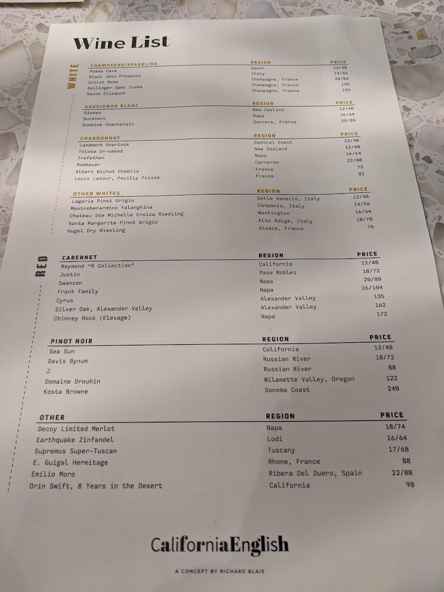 California English Menu (2025 Update)
